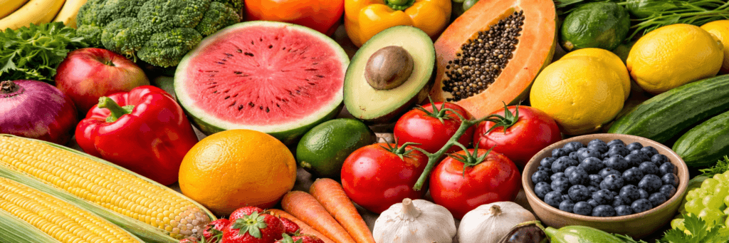 - A variety of colorful vegetables and fruits